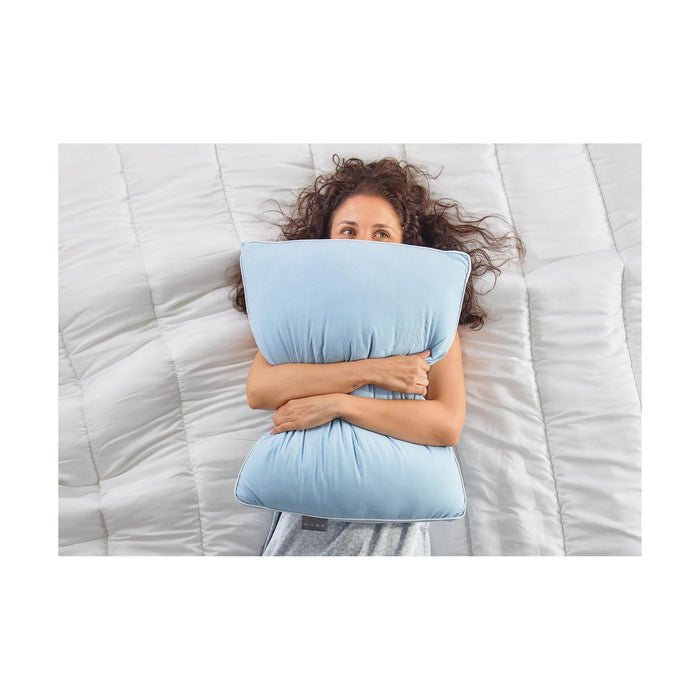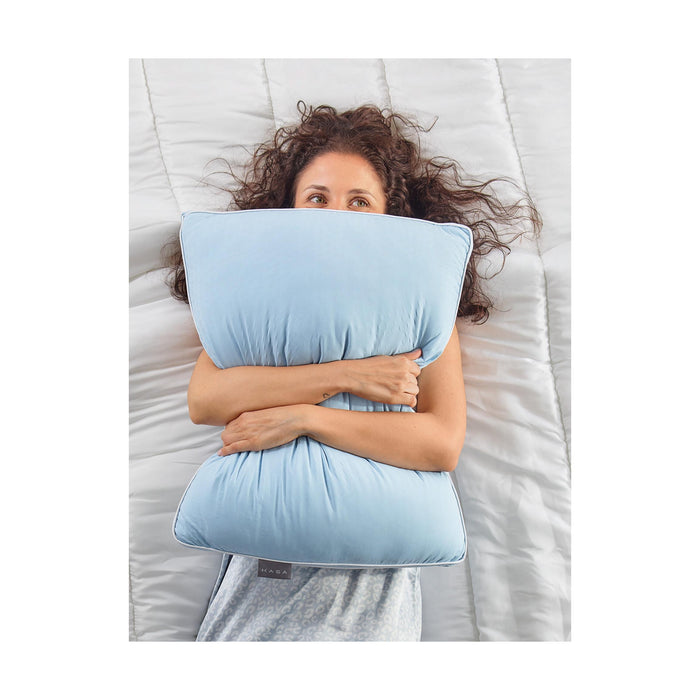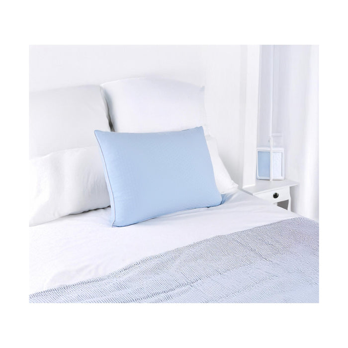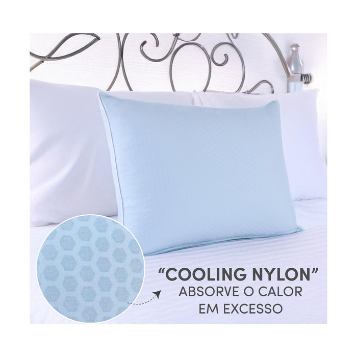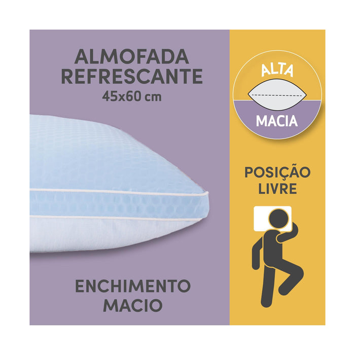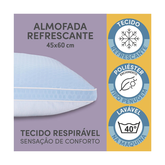 Desfrute de uma sensação de conforto e frescura com esta almofada refrescante. O tecido respirável e fresco ao toque ajuda a regular o calor durante a noite, enquanto o enchimento macio, em fibra sintética, a imitar a penugem, envolve-o num conforto fofo e aconchegante. Ideal para noites mais quentes ou para quem procura dormir sempre com a temperatura ideal.