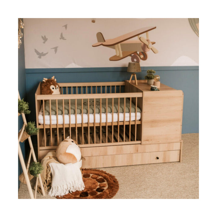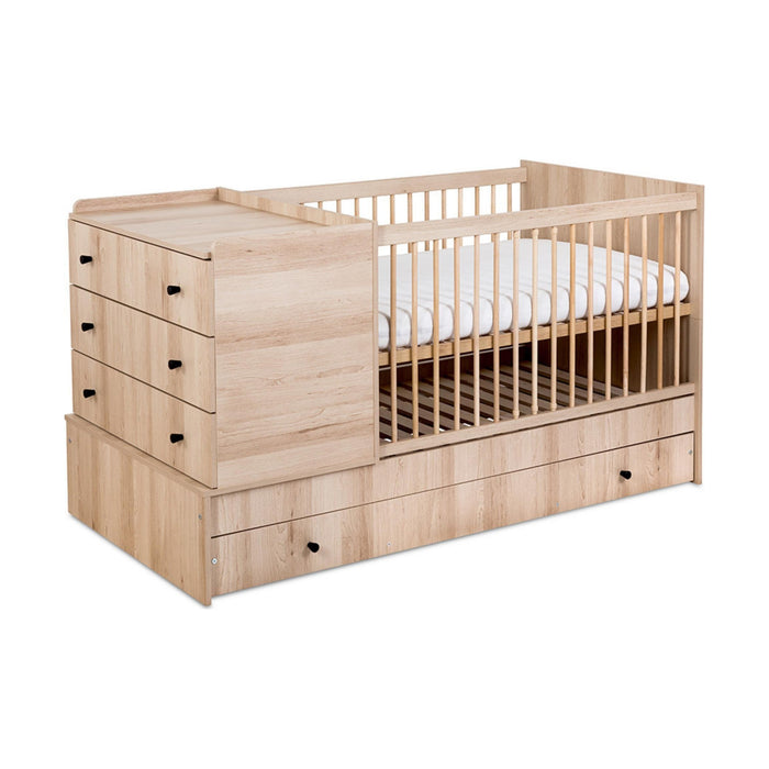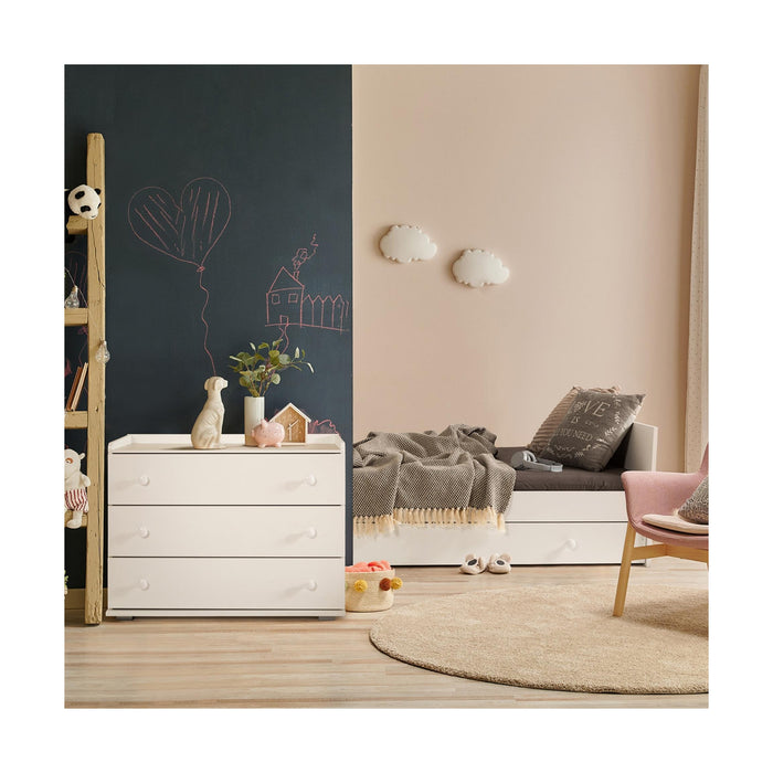 A solução completa para o quarto do bebé! A Cama Kompakt 3 em 1 combina berço, cama e cómoda num design funcional e elegante em branco. Evolui com o crescimento da criança, garantindo conforto e organização num só móvel.