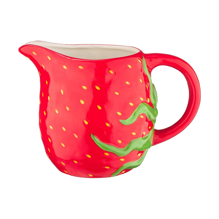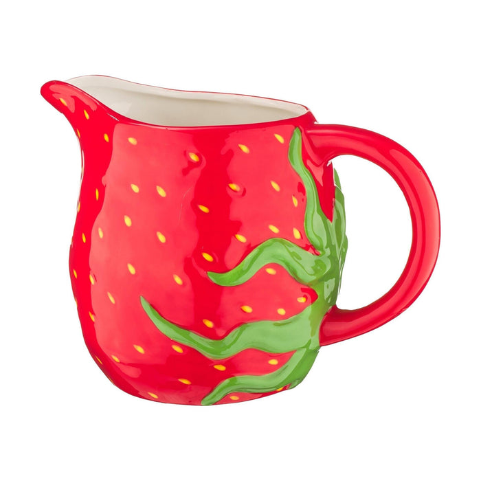 Jarro em cerâmica de 5,8L inspirado no morango, perfeito para servir bebidas com estilo e cor. Uma peça decorativa que transforma qualquer mesa num espaço alegre e cheio de personalidade.