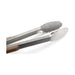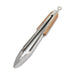 Pinça de cozinha em aço inoxidável com cabo de madeira, ideal para manusear alimentos quentes com segurança. Perfeita para virar carne, legumes ou grelhados com firmeza.